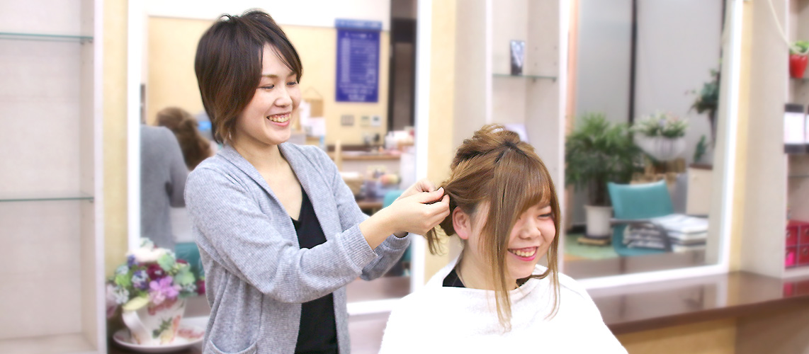 ヘアメイク、着付け、フェイシャルエステまで充実、数々のコンテストで賞を取ったスタッフが、あなたのキレイづくりのお手伝いをいたします。「貸衣裳シャラン」「スタジオ3B」と合わせて、サロン・ド・エミールは、衣裳選びから写真撮りまで出来る美容室です。